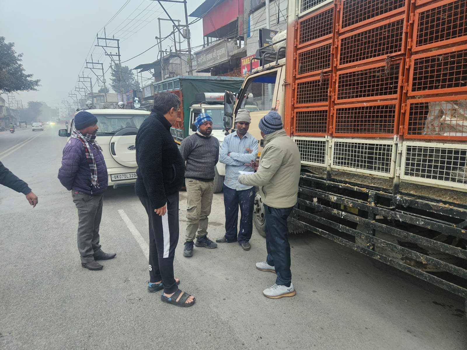 देहरादून। राजधानी देहरादून में सोमवार को सुबह 7:00 शहर में राउंड लगाते समय पाया गया कि एक ट्रक जिसमें मुर्गियों को ले जाया जा रहा था का निरीक्षण करने पर पाया गया कि उसमें मृत मुर्गी भी ट्रक में मौजूद थी। ट्रक रोकने का इशारा किया गया परंतु ट्रक ड्राइवर मौके से फरार होने की कोशिश की तथा परेड ग्राउंड में नो एंट्री की साइड मोड कर भाग निकला जिसका पीछा करने पर रायपुर रोड स्थित चुनभट्टा पर ट्रक को इंटरसेप्ट कर रोका गया तथा मौके पर उसका चालान किया गया तथा करीब 65 मृत मुर्गी ट्रक में से हटाकर उन्हें नियम अनुसार डिस्पोज किया गया। टीम में मुख्य नगर स्वास्थ्य अधिकारी स्थानीय इंस्पेक्टर भूपेन पवार सुपरवाइजर तेजपाल उपस्थित रहे।