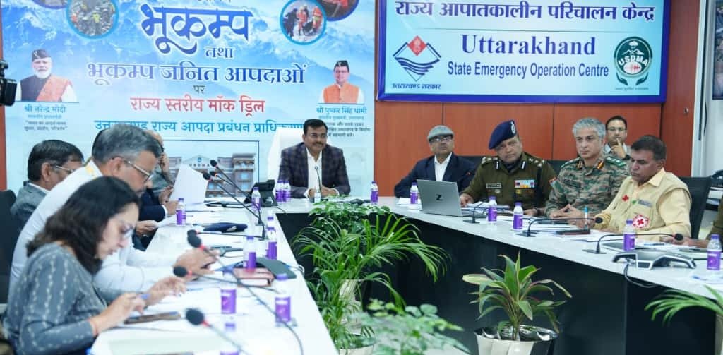 देहरादून। भूकंप तथा भूकंप जनित आपदाओं से बचाव तथा भूकंप आने पर विभिन्न रेखीय विभागों की तैयारियों को परखने के लिए शनिवार को राज्य के सभी 13 जनपदों में 80 से भी अधिक स्थानों पर राज्य स्तरीय मॉक ड्रिल का आयोजन किया गया। यह पहला अवसर है जब यूएसडीएमए द्वारा इतने बड़े स्तर पर मॉक ड्रिल आयोजित की गई। उत्तराखण्ड राज्य आपदा प्रबंधन प्राधिकरण द्वारा आयोजित मॉक ड्रिल की निगरानी राज्य आपातकालीन परिचालन केंद्र से की गई। मुख्य सचिव आनंद बर्द्धन ने एसईओसी पहुंचकर मॉक ड्रिल का निरीक्षण किया। उन्होंने जिलाधिकारियों से वीडियो कांफ्रेंसिंग के माध्यम से संवाद कर राहत एवं बचाव कार्यों की स्थिति, टीमों की तैनाती, क्षति तथा विभागीय समन्वय की वास्तविक तैयारियों की जानकारी ली। साथ ही उन्होंने ग्राउंड जीरो पर मौजूद इंसीडेंट कमाण्डरों तथा राहत एवं बचाव कार्य में जुटे कर्मियों से भी बात की। इस दौरान उन्होंने जनपदों से पूछा कि राज्य स्तर पर उन्हें किस प्रकार के सहयोग की आवश्यकता है।