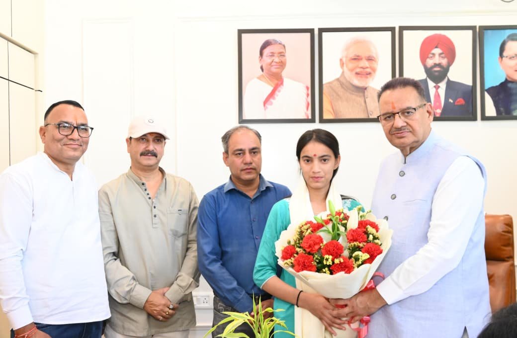 देहरादून। सोमवार को कैबिनेट मंत्री गणेश जोशी ने अपने कैंप कार्यालय में मालदेवता सरखेत निवासी मेधावी छात्रा साक्षी को उत्तराखंड बोर्ड की हाईस्कूल परीक्षा में 94.60 प्रतिशत अंक प्राप्त कर प्रदेश में 15वीं रैंक हासिल करने पर शॉल ओढ़ाकर सम्मानित किया। काबीना मंत्री ने मेधावी छात्रा साक्षी को लैपटाप देने की घोषणा की। इस अवसर पर कैबिनेट मंत्री गणेश जोशी ने साक्षी की इस उपलब्धि को गौरवपूर्ण बताते हुए कहा कि उनकी मेहनत, लगन और अनुशासन अन्य विद्यार्थियों के लिए प्रेरणास्रोत है। उन्होंने कहा कि इस तरह की उपलब्धियां न केवल परिवार, बल्कि पूरे क्षेत्र और प्रदेश का नाम रोशन करती हैं। उन्होंने साक्षी के पिता को भी बधाई देते हुए कहा कि बच्चों की सफलता में अभिभावकों का महत्वपूर्ण योगदान होता है। उन्होंने साक्षी के उज्ज्वल भविष्य की कामना करते हुए आगे भी इसी प्रकार उत्कृष्ट प्रदर्शन करने के लिए प्रोत्साहित किया। इस अवसर पर महावीर सिंह, अनुज कौशल, घनश्याम सिंह नेगी आदि उपस्थित रहे।