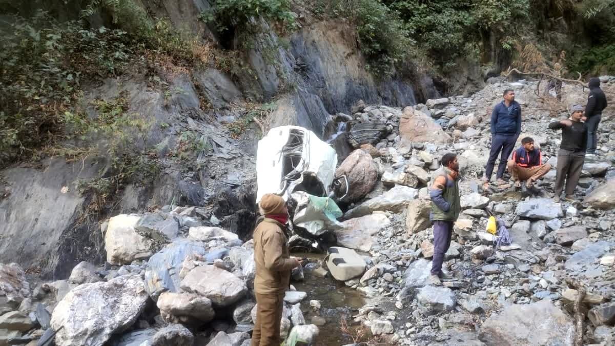 200 मीटर खाई में गिरी कार, पति की मौत, पत्नी गंभीर घायल