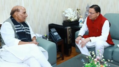 सीएम धामी ने केंद्रीय रक्षा मंत्री राजनाथ सिंह से की शिष्टाचार भेंट