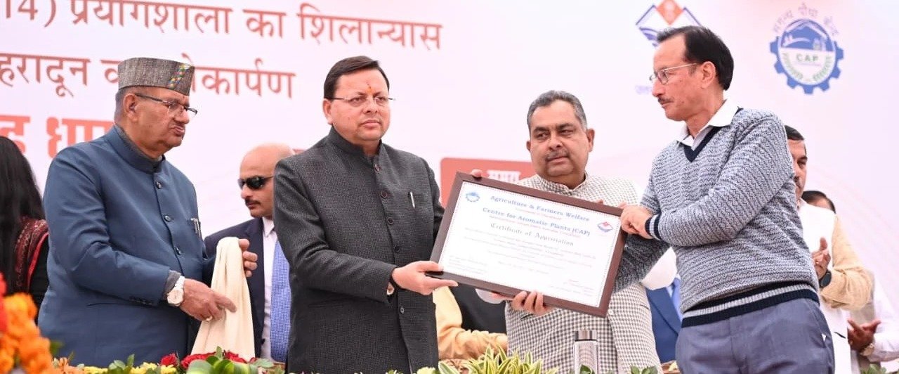 देहरादून । मुख्यमंत्री पुष्कर सिंह धामी ने शनिवार को सगन्ध पौधा केन्द्र, सेलाकुई, देहरादून में आयोजित कार्यक्रम में प्रतिभाग करते हुए उत्तराखण्ड महक क्रांति नीति-2026-36 का शुभारम्भ किया। उन्होंने सेटेलाइट सेन्टर भाऊवाला का लोकार्पण एवं सगन्ध पौधा केन्द्र, सेलाकुई स्थित ए.एम.एस (C-14) प्रयोगशाला का भी शिलान्यास किया। इस दौरान मुख्यमंत्री ने कुल 5 सेटेलाइट सेन्टरों का भी शिलान्यास किया। यह सेटेलाइट सेंटर-परसारी (चमोली), रैथल (उत्तरकाशी), भैसोड़ी (अल्मोड़ा), खतेड़ा (चंपावत) एवं विषाड (पिथौरागढ़) में स्थापित किए जाएंगे। कार्यक्रम के दौरान सुगंध पौधा केन्द्र और डाबर इंडिया लिमिटेड के बीच एम.ओ.यू. पर हस्ताक्षर भी किए गए। इस समझौता ज्ञापन का उद्देश्य एक्सटेंशन (विस्तार), अनुसंधान एवं विकास, मानव संसाधन विकास, मार्केटिंग आदि के क्षेत्र में कैप और डाबर के बीच सहयोग के लिए एक रूपरेखा तैयार करना है। एम.ओ.यू के दौरान कैप की ओर से निदेशक कैप नृपेन्द्र सिंह चौहान, एवं डाबर की अधिशासी निदेशक डाबर डा. सौरभ लाल मौजूद रहे।