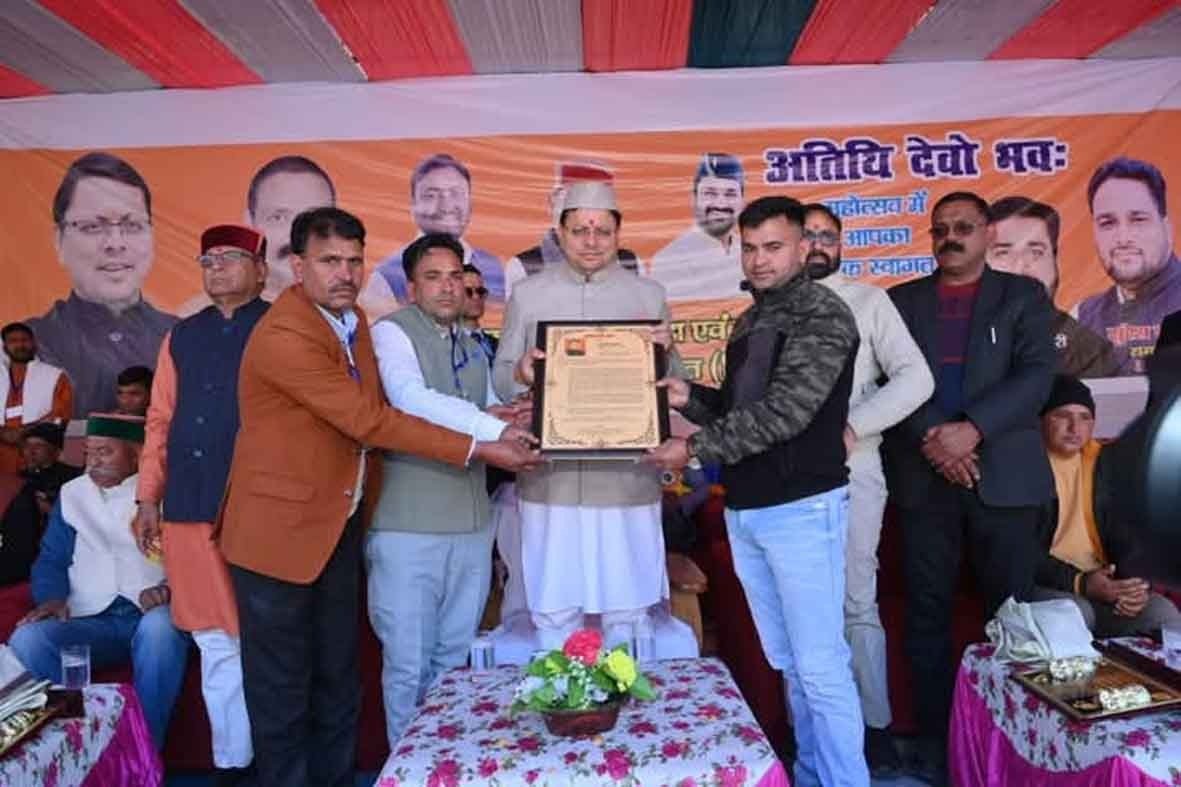 टिहरी/देहरादून। मुख्यमंत्री पुष्कर सिंह धामी ने मंगलवार को रा.इ.कॉ. गरखेत नैनबाग टिहरी गढ़वाल पहुंचकर जौनपुर क्रीड़ा एवं सांस्कृतिक विकास महोत्सव में प्रतिभाग किया। समिति द्वारा मुख्यमंत्री का जोरदार स्वागत करते हुए कोट एवं टोपी पहनाकर सम्मान किया गया।