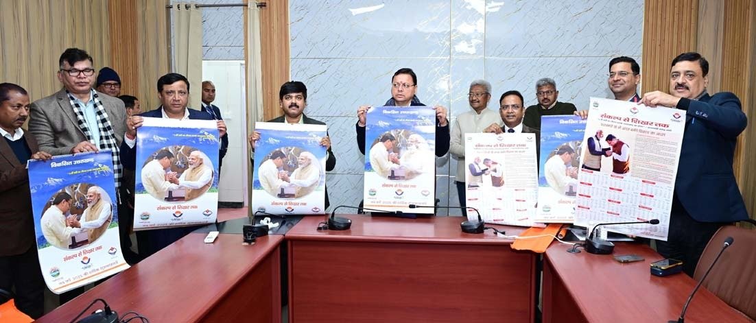देहरादून । मुख्यमंत्री पुष्कर सिंह धामी ने सोमवार को महाराणा प्रताप स्पोर्टस कॉलेज परिसर में सूचना एवं लोक संपर्क विभाग द्वारा प्रकाशित 2025 के कैलेंडर ’’विकसित उत्तराखण्ड संकल्प से शिखर तक’’ का विमोचन किया। मुख्यमंत्री ने कलेन्डर में प्रकाशित विषयवस्तु के प्रयासों की सराहना करते हुए कहा कि कलेन्डर में प्रधानमंत्री नरेन्द्र मोदी के उत्साहवर्धक संदेश के साथ राज्य के प्रमुख ऐतिहासिक, धार्मिक, पर्यटन स्थलों को प्रदर्शित किया गया है। मुख्यमंत्री ने कहा कि प्रकाशित कलेन्डर राज्य के नैसर्गिक सौन्दर्य एवं धार्मिक पर्यटन को भी बढ़ावा देने में मददगार होगा। मुख्यमंत्री ने इस अवसर पर सूचना विभाग द्वारा प्रकाशित एक पृष्ठीय प्रधानमंत्री नरेन्द्र मोदी के नौ आग्रहों एवं राष्ट्रीय खेलों पर आधारित कैलेंडर का भी विमोचन किया। इस अवसर पर प्रमुख सचिव आरके सुधांशु, सचिव आर मीनाक्षी सुंदरम, पंकज कुमार पांडेय, विनय शंकर पांडेय, महानिदेशक सूचना बंशीधर तिवारी, विशेष कार्याधिकारी मुख्यमंत्री एस.पी.एस. रावत, अपर सचिव एस.एस. टोलिया, अपर निदेशक सूचना आशिष कुमार त्रिपाठी, उप निदेशक मनोज कुमार श्रीवास्तव उपस्थित थे।