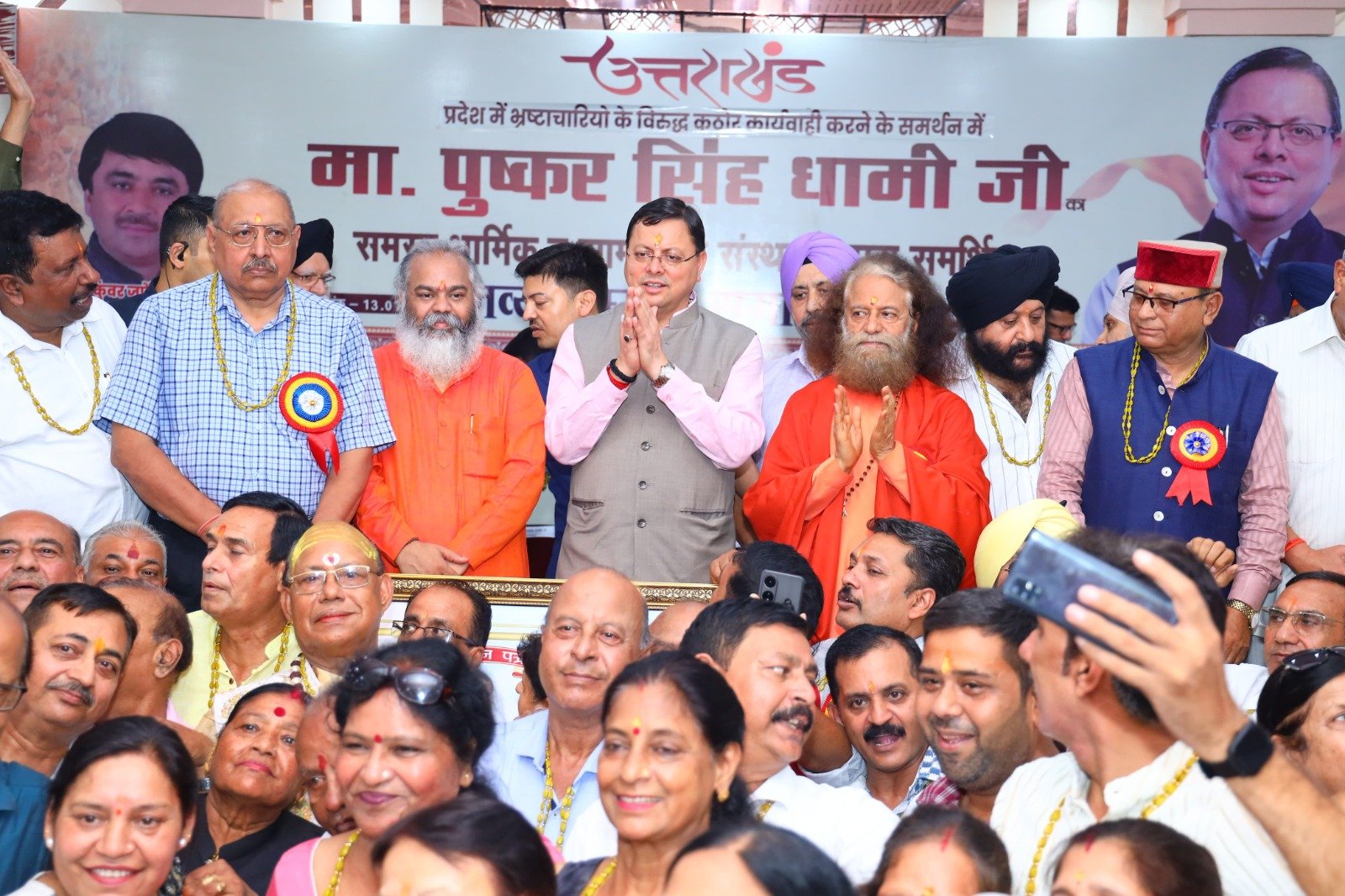 देहरादून । मुख्यमंत्री पुष्कर सिंह धामी ने रविवार को बल्लीवाला, देहरादून में ‘भ्रष्टाचार मुक्त उत्तराखंड’ के लिए मुख्यमंत्री द्वारा किए जा रहे प्रयासों पर धार्मिक एवं सामाजिक संस्थाओं द्वारा आयोजित सम्मान समारोह में प्रतिभाग किया। इस अवसर पर मुख्यमंत्री ने सभी को भ्रष्टाचार मुक्त उत्तराखंड की शपथ भी दिलाई।