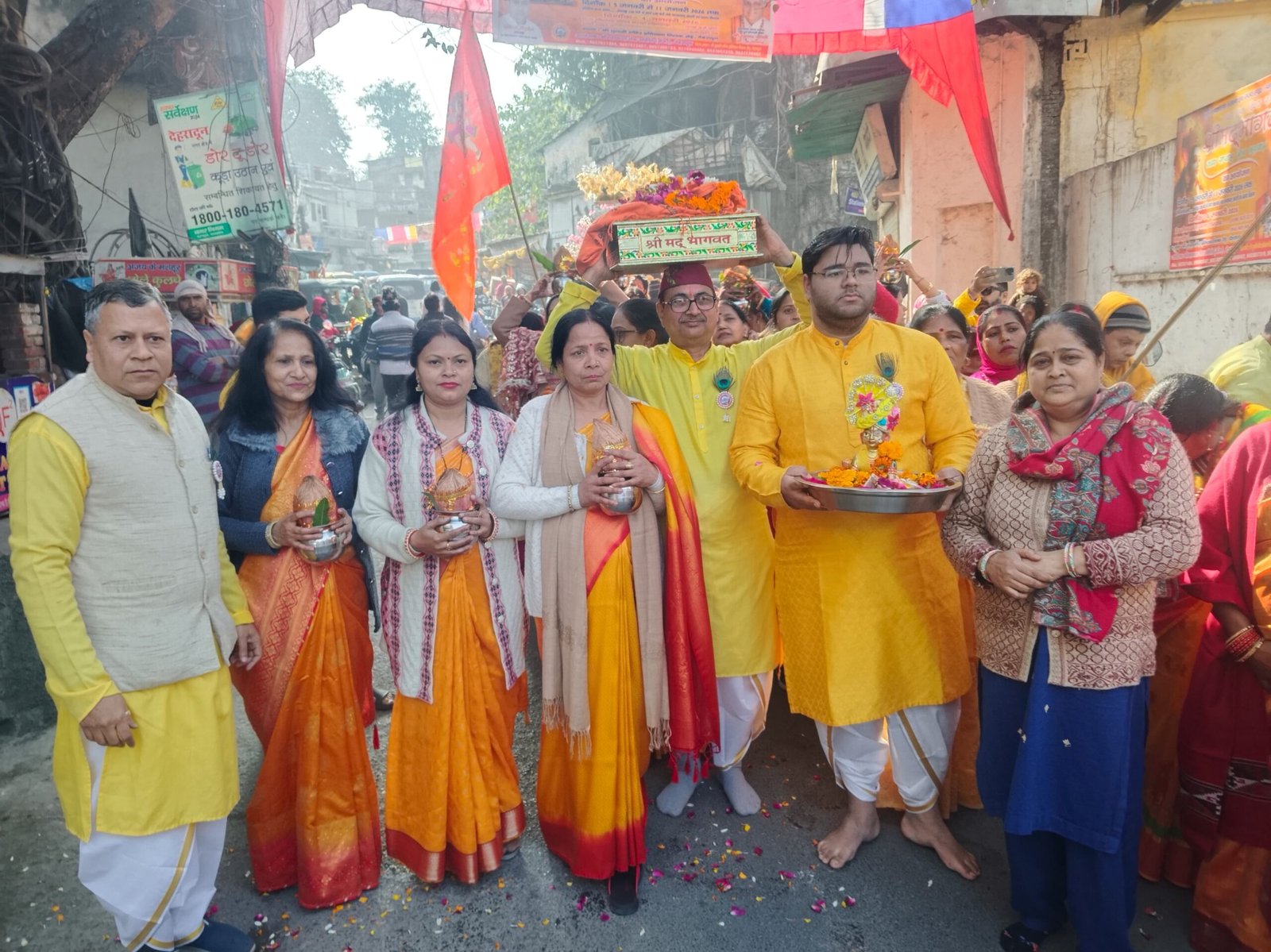 देहरादून। माग महीने के प्रथम दिन श्री मद्भागवत भागवत कथा की कलश यात्रा का आयोजन श्री महाकाल सेवा समिति द्वारा किया गया यात्रा श्री गुरु राम राय दरबार साहिब से चलकर कथा स्थल तुलसी मंदिर पर विश्राम किया भक्तो ने भगवान के मंगल भजनों के साथ नाच गाते हुए आनंद लिया कथा व्यास श्री सुभाष जोशी जी ने बताया भागवत गीता से ज्ञान ओर न्याय की सीख मिलती है और जीवन जीने की राह मिलती है,ऐसा व्यास जी ने अपने विचार रखे कथा में सीमित और भक्तजन का विशेष सहयोग रहा जिसमें समिति के संरक्षक सुधीर जैन, अश्वनी अग्रवाल, आलोक जैन, अनिरुद्ध जिंदल ,रोशन राणा, बालकृष्ण, संजीव गुप्ता, विनय प्रजापति ,गौरव जैन, सुमित बंसल, हेमराज अरोड़ा,अरिहंत जैन,राहुल माटा आयुष जैन ,नितिन अग्रवाल ,शिवम् गुप्ता अनुष्का राणा, कृतिका राणा ,नितिन अग्रवाल, हिमांशु कोटनाला,विक्रम चौधरी और पुनीत जैन आदि मौजूद रहे।
