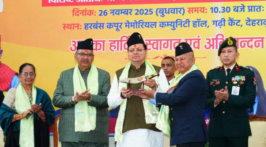 देहरादून । हरबंश कपूर मैमोरियल सभागार, गढ़ी कैंट में आयोजित कार्यक्रम में मुख्यमंत्री श्री पुष्कर सिंह धामी ने बैरिस्टर अरि बहादुर गुरूंग की प्रतिमा का अनावरण करने के साथ ही एसोसिएशन की स्मारिका का भी विमोचन किया। इस मौके पर मुख्यमंत्री ने कहा कि बैरिस्टर अरि बहादुर गुरूंग ना सिर्फ एक सांसद थे, बल्कि उन्होंने भारतीय संविधान के निर्माण में भी महत्वपूर्ण योगदान दिया। मुख्यमंत्री ने कहा कि ये सिर्फ एक संगठन का उत्सव नहीं है, बल्कि ये उस अदम्य साहस, समर्पण, राष्ट्रभक्ति और गौरवशाली परम्परा का उत्सव भी है, जिसे गोरखा सैनिकों ने सदियों से अपने पराक्रम से संजोया है। उन्होंने कहा कि गोरखा सैनिकों के पराक्रम और बलिदान की पहचान इस बात से होती है कि दुनिया की कोई भी युद्ध गाथा गोरखाओं के बिना पूर्ण नहीं मानी जाती। इसलिए भारत सरकार द्वारा ऑल इंडिया गोरखा एक्स-सर्विसमेन्स वेलफेयर एसोसिएशन को ऑल इंडिया स्टेटस प्रदान किया जाना इस समुदाय की प्रतिष्ठा और योगदान का सम्मान है।