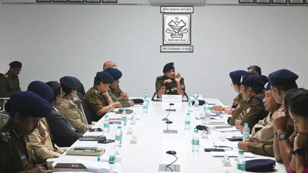 देहरादून : आज पुलिस महानिदेशक, उत्तराखण्ड, अभिनव कुमार ने समस्त जनपद प्रभारियों, सेनानायकों, एवं परिक्षेत्र प्रभारियों के साथ पुलिस मुख्यालय स्थित सभागार में बैठक की। सेंथिल अबुदेई कृष्ण राज एस, पुलिस उप महानिरीक्षक, पी/एम द्वारा समस्त उत्तराखण्ड पुलिस परिवार की ओर से नवनियुक्त पुलिस महानिदेशक को शुभकामनाएं दी गयी।