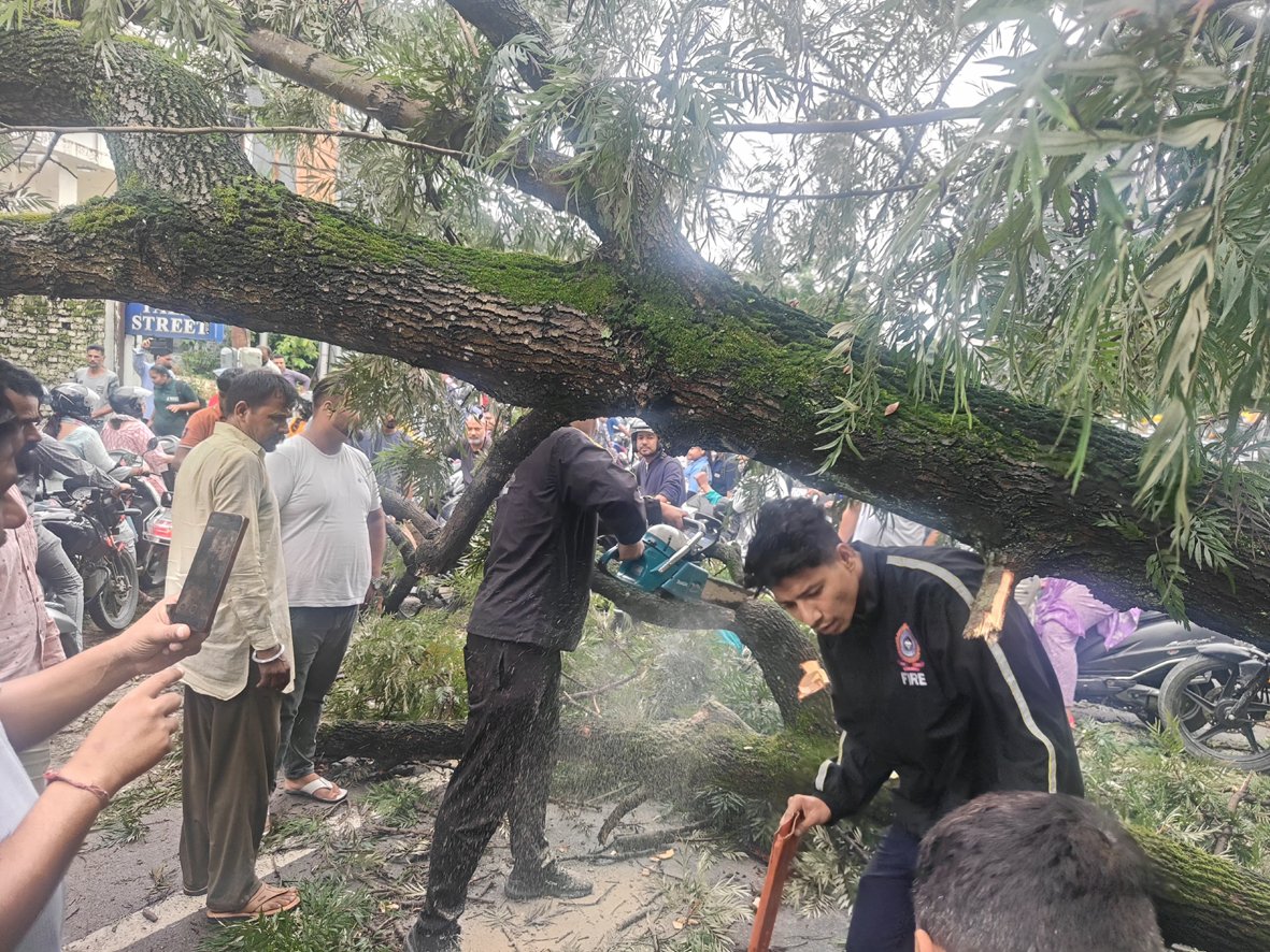 देहरादून। बीते दिवस पंडितवाड़ी में एक विशालकाय पेड़ सड़क के बीचोबीच गिर गया जिस कारण सड़क पर लंबा जाम लग गया। पेड़ गिरने से मार्ग पर चलने वाले लोगों पेरशानियों का सामना करना पड़ा। इस घटना के बार में फायर स्टेशन को सूचित किया गया फायर सर्विस द्वारा त्वरित कार्यवाही की गई व घटनास्थल पर पहुंच कर वुडन कटर की सहायता से विशालकाय पेड़ को पूर्ण रूप से काटकर यातायात को सुचारू रूप से चलाया गया।