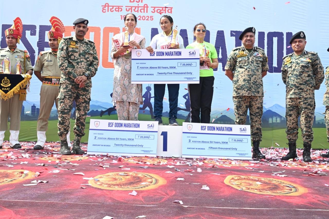 देहरादून । सीमा सुरक्षा बल और भारतीय खेल प्राधिकरण की ओर से आयोजित एक भव्य हाफ मैराथन दौड़ देहरादून स्थित राजीव गांधी क्रिकेट स्टेडियम परिसर में सफलतापूर्वक संपन्न हुई। इस दौड़ में न केवल पेशेवर धावकों, बल्कि बच्चों, बुजुर्गों और महिलाओं सहित बड़ी संख्या में प्रतिभागियों ने बड़े उत्साह के साथ भाग लिया। कार्यक्रम के अंत में आयोजित पुरस्कार वितरण समारोह में मुख्य अतिथि सतीश श्रीरामजी खण्डारे, भारतीय पुलिस सेवा, अपर महानिदेशक, पश्चिमी कमान, सीमा सुरक्षा बल द्वारा विजेताओं को पदक और नकद पुरस्कार प्रदान कर सम्मानित किया गया। इस प्रतियोगिता में कुल 10 लाख रुपये की नकद राशि पुरस्कार के रूप में वितरित की गई।