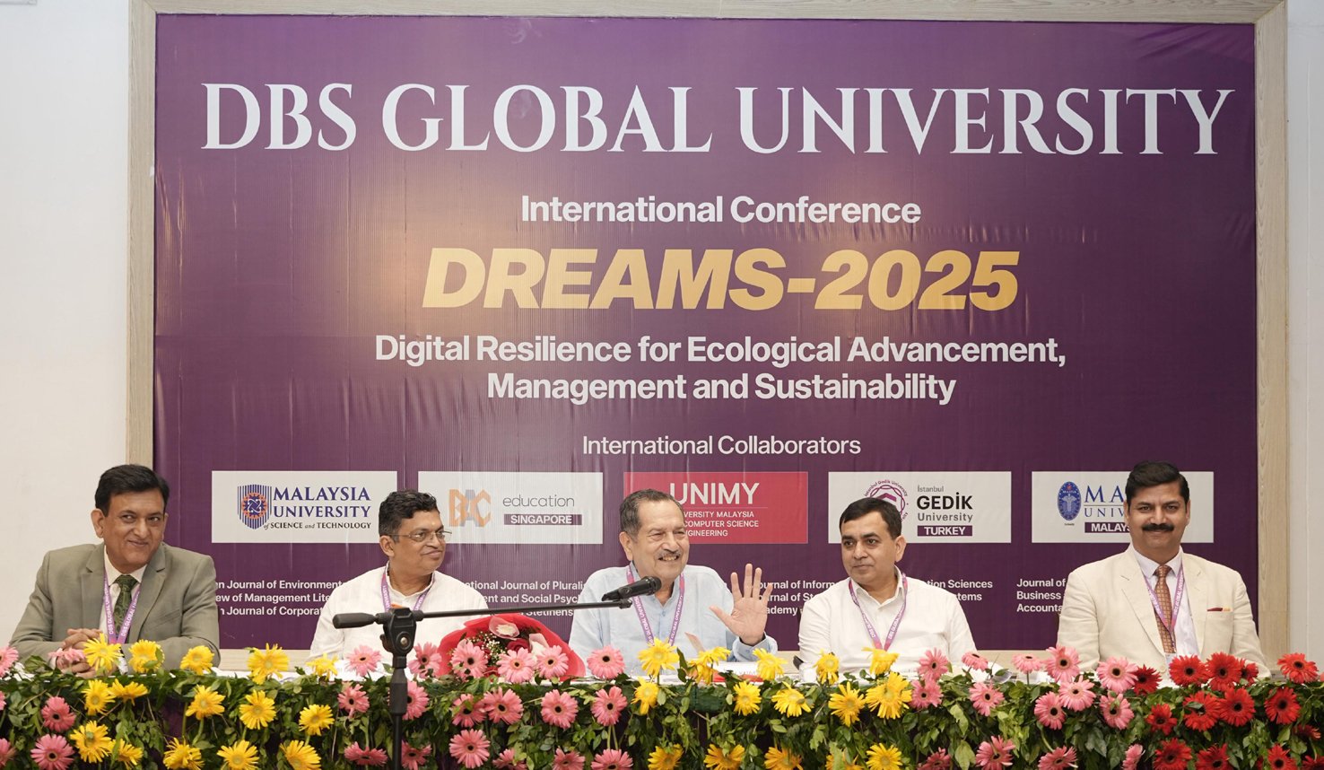 इस अवसर पर विश्वविद्यालय नेतृत्व की गरिमामयी उपस्थिति में अध्यक्ष मोहित अग्रवाल, कुलपति डॉ. संजय जसोल, रजिस्ट्रार डॉ. रोहित रस्तोगी, कॉन्फ्रेंस अध्यक्ष एवं प्रो-वाइस चांसलर (डॉ.) राजीव भारद्वाज और प्रो-वाइस चांसलर डॉ. मनीष प्रतीक उपस्थित रहे। कुलपति डॉ. संजय जसोल ने कहा कि यह सम्मेलन वैश्विक विमर्श का सशक्त मंच है, जो आने वाले वर्षों की दिशा तय करेगा। डीबीएस ग्लोबल विश्वविद्यालय शिक्षा के साथ-साथ समाज और राष्ट्र निर्माण में सक्रिय योगदान दे रहा है। ड्रीम्स-2025 सम्मेलन इसी प्रतिबद्धता का सशक्त प्रमाण है।