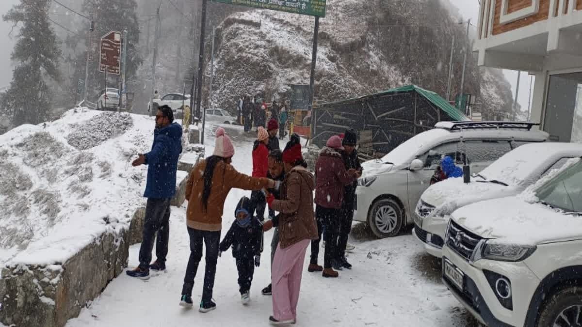 विकासनगर । उत्तराखंड में मौसम ने करवट बदल ली है। प्रदेश में एक बार फिर बारिश और बर्फबारी का दौर शुरू हो गया है। प्रदेश के हिल स्टेशनों में जमकर बर्फबारी से सैलानियों के चेहरे खिल गए हैं। वहीं सैलानी बर्फबारी का जमकर लुत्फ उठा रहे हैं। उत्तराखंड में मौसम विभाग की चेतावनी सटीक साबित हुई है। चकराता में देर शाम मौसम ने करवट बदली और हल्की बारिश के साथ ही चकराता के ऊंचाई वाले क्षेत्रों में बर्फबारी शुरू हो गई है। बता दें कि पिछले कई दिनों से जहां मैदानी क्षेत्रों में कोहरा व ठंड से लोग बेहाल थे। वहीं पहाड़ों में सूखी ठंड में पड़ रही थी। चकराता की ऊंची पहाड़ियों लोखंडी समेत आसपास के क्षेत्रों में सुबह से बर्फबारी शुरू हो गई है। जहां सैलानी बर्फबारी का जमकर लुत्फ उठा रहे हैं। वहीं बर्फबारी से पहाड़ियां चांदी सी चमक रही है। वहीं बारिश और बर्फबारी से तापमान में गिरावट देखी जा रही है। वहीं उत्तराखंड के पर्वतीय जनपदों में सुबह से बर्फबारी का दौर देखने को मिल रहा है। कई दिनों से पर्वतीय अंचलों में सूखी ठंड पढ़ने के बाद मौसम ने करवट बदली है और बर्फबारी के बाद नजारा काफी खूबसूरत बना दिया है। सैलानी बर्फबारी का काफी दिनों से इंतजार कर रहे थे। वहीं बर्फबारी से स्थानीय व्यवसायियों के भी चेहरे खिले हुए हैं। स्थानीय व्यवसायियों को शीतकालीन सीजन में अच्छा कारोबार होने की उम्मीद है। वहीं बर्फबारी होने के बाद लोग हिल स्टेशनों का रुख कर रहे हैं।