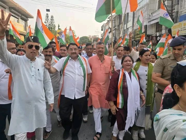 देहरादून। ऑपरेशन सिंदूर की सफलता के फलस्वरूप रविवार को पूर्व निर्धारित कार्यक्रम के अनुसार रायपुर विधायक उमेश शर्मा’काऊ’ तथा महापौर सौरभ थपलियाल के नेतृत्व में सैकड़ों की संख्या में लोग नेहरु कालोनी के पार्क में जमा हुए। रैली स्थल से भारत माता तथा “ऑपरेशन सिंदूर” के रणबांकुरों की जयघोष करते हुए हाथों में तिरंगा लिए हुए राहुल डेरी,फव्वारा चौक होते हुए शहीद मेजर चित्रेेश स्मारक धर्मपुर तथा शहीद ऑन्दोलनकारी रविन्द्र सिंह रावत स्मारक में श्रद्धांजलि अर्पित कर वापस नेहरु कालोनी पार्क पहुंचे। तिरंगा शौर्य सम्मान यात्रा में अजबपुुर मंडल की अध्यक्ष सुषमा कुकरेती,वीरचन्द्र सिंह गढवाली मंडल के अध्यक्ष प्रकाश बडोनी,एडवोकेट एन के गुसाईं,आर पी नौटियाल,सुनील जुयाल,चन्द्र प्रकाश जखमोला, दोनों मंडलों के पार्षद तथा सैकड़ों की संख्या में महिला-पुरुष,नौजवान तथा स्कूली ड्रेस पहने हाथों में तिरंगा तथा देश,सरकार तथा सेना के समर्थन की तख्तियां लेेकर स्कूल के बच्चे उपस्थित रहे।