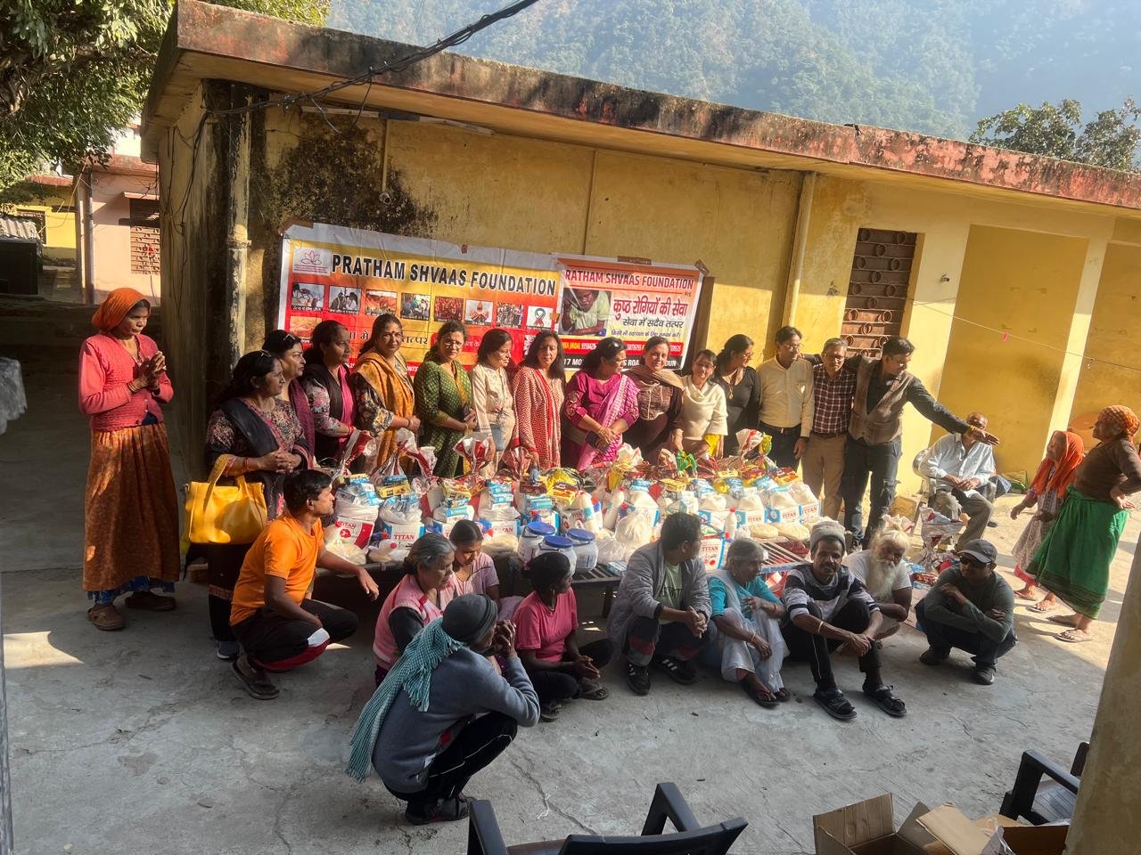 ऋषिकेश। प्रथम श्वास फाउंडेशन परिवार ने अपनी जनसेवा मुहिम “एक मुट्ठी अनाज” के अंतर्गत आज ऋषिकेश स्थित कुष्ठ आश्रम पहुंचकर वहां रह रहे परिवारों को आवश्यक सामग्री प्रदान की। फाउंडेशन द्वारा लगभग पचास हज़ार रुपये मूल्य का अनाज, आटा, दाल, चावल, चीनी, दूध, फल, दवाइयां, दैनिक उपयोग की वस्तुएं, हार्पिक, फिनायल इत्यादि वितरित किए गए।