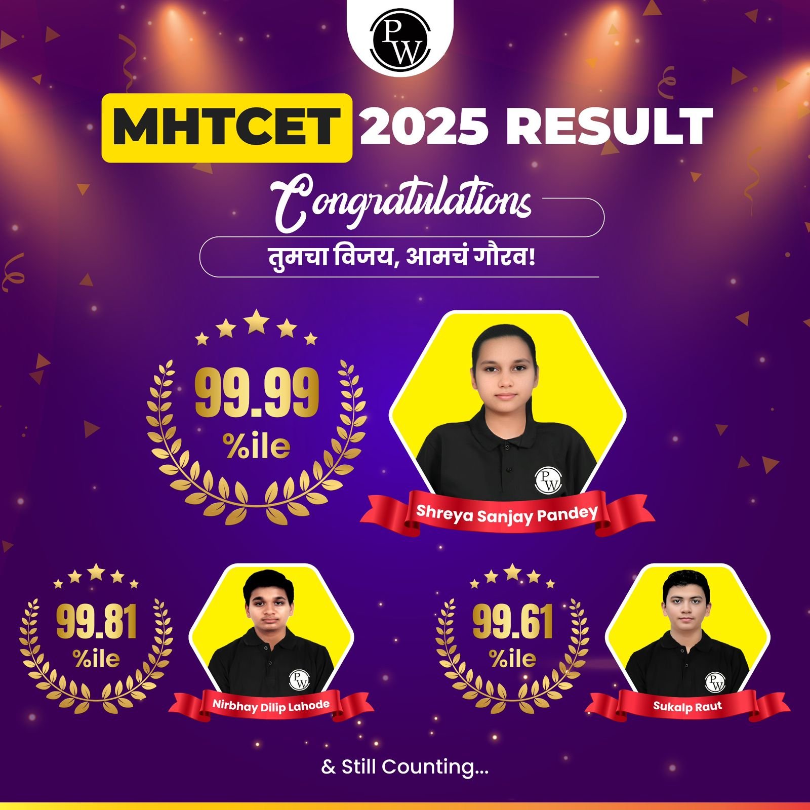 अलख पांडे, एजुकेटर, फाउंडर और CEO फिजिक्सवाला ने कहा,”हर उस स्टूडेंट को बधाई जिसने MHT CET 2025 का एग्ज़ाम दिया। मैं हमेशा मानता हूं कि सफलता सिर्फ मार्क्स से नहीं तय होती, ये आपकी मेहनत, ईमानदारी और लगातार की गई कोशिशों से बनती है।आपमें से इतने सारे बच्चों को इतना अच्छा करते देखना, खासकर जब आपने पीडब्ल्यू महाराष्ट्र जैसे प्लेटफॉर्म से तैयारी की, ये वाकई गर्व की बात है। फिजिक्सवाला में हमारी कोशिश यही रहती है कि चाहे आपकी शुरुआत कहीं से भी हो, या आप किसी भी तरीके से पढ़ना पसंद करते हों हम हमेशा आपके साथ खड़े रहें। और अगर किसी का रिज़ल्ट उम्मीद के मुताबिक नहीं आया है, तो निराश मत होइए। आपकी कहानी अभी बाकी है।