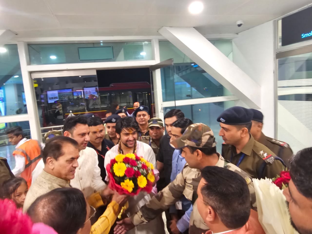 शनिवार देर शाम एयरपोर्ट पहुंचे आचार्य धीरेंद्र कृष्ण शास्त्री जी का सरकार की ओर से स्वागत का डॉ अग्रवाल ने कहा कि आचार्य जी में साक्षात हनुमान जी की कृपा है। कहा कि हनुमंत कथा कहने का अलग अंदाज लोगों को धर्म के प्रति झुकने पर मजबूर कर देता है।