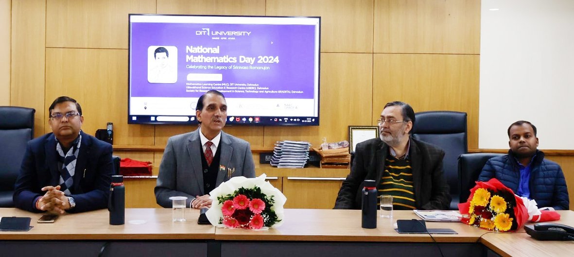 कार्यक्रम का शुभारंभ प्रो. (डॉ.) नरेश मोहन चड्ढा, डीन, स्कूल ऑफ फिजिकल साइंसेज, डीआईटी विश्वविद्यालय द्वारा हुआ। उन्होंने दिन की महत्ता और रामानुजन की विरासत पर प्रकाश डाला। कार्यक्रम का संचालन डॉ. श्रुति तोमर, सहायक प्रोफेसर, गणित द्वारा कुशलतापूर्वक किया गया।