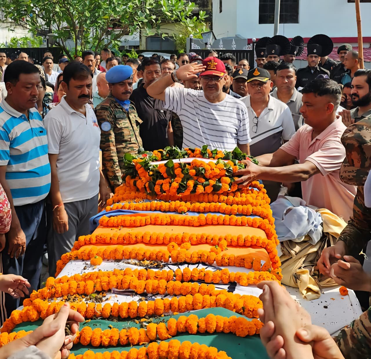 देहरादून। सैनिक कल्याण मंत्री गणेश जोशी ने रविवार को गढ़ी कैंट में नायक सूबेदार सुजीत कुमार प्रधान के पार्थिव शरीर पर पुष्पचक्र अर्पित कर उन्हें भावपूर्ण श्रद्धांजलि दी। इस दौरान सैनिक कल्याण मंत्री ने शहीद के परिजनों का ढाढ़स बंधाया और गहरी शोक संवेदनाएं व्यक्त कीं और राज्य सरकार की ओर से हरसंभव सहायता का आश्वासन दिया।