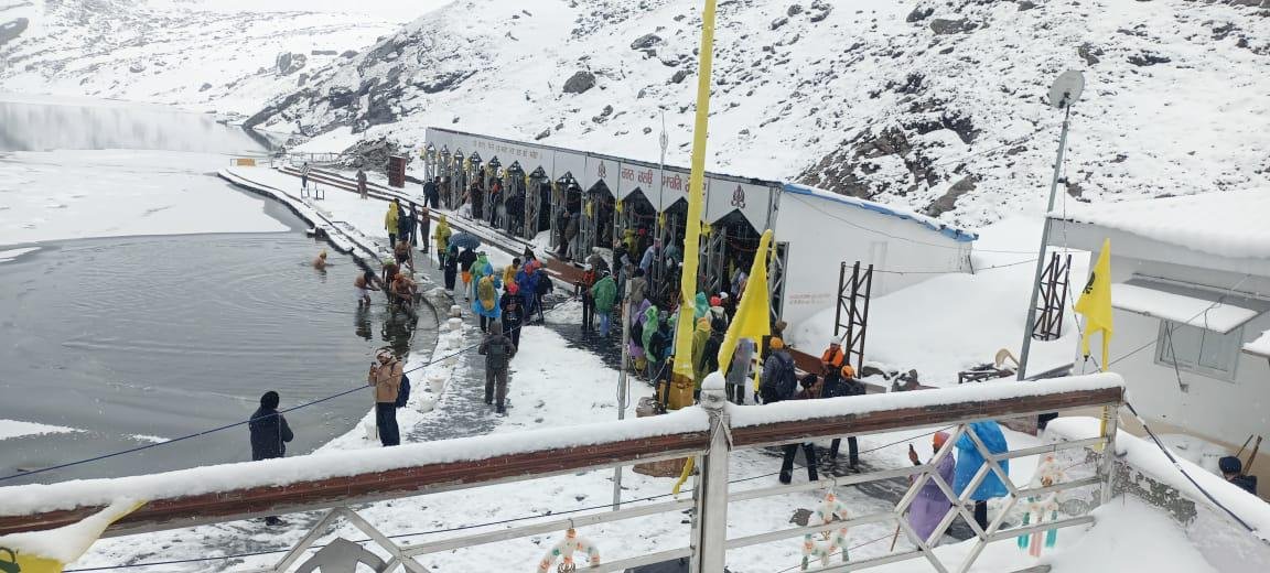 चमोली। श्री हेमकुंड साहिब, जो सिख धर्म के सबसे पवित्र तीर्थ स्थलों में से एक है, में पिछले चार दिनों से रुक-रुक कर हो रही बर्फबारी के बावजूद तीर्थयात्रियों का उत्साह चरम पर है। हिमालय की गोद में 15,000 फीट से अधिक की ऊंचाई पर स्थित इस पवित्र गुरुद्वारे में तीर्थयात्री अटूट श्रद्धा और विश्वास के साथ पहुंच रहे हैं। ठंडे मौसम और बर्फीली हवाओं के बीच भी, तीर्थयात्री पवित्र सरोवर में स्नान कर रहे हैं, जो उनकी गहरी आस्था और दृढ़ संकल्प का प्रतीक है। सरोवर का जल अत्यंत ठंडा होने के बावजूद, श्रद्धालु अपनी भक्ति के बल पर इस कठिन परिस्थिति में भी डटकर डुबकी लगा रहे हैं, जो उनकी आध्यात्मिक शक्ति को दर्शाता है। पिछले आठ दिनों में श्री हेमकुंड साहिब में तीर्थयात्रियों की संख्या ने एक नया कीर्तिमान स्थापित किया है। इस दौरान 30,000 से अधिक श्रद्धालुओं ने गुरुद्वारे के दर्शन किए, जो पिछले वर्ष की तुलना में एक रिकॉर्ड उपलब्धि है। यह आंकड़ा न केवल तीर्थयात्रियों की बढ़ती संख्या को दर्शाता है, बल्कि श्री हेमकुंड साहिब के प्रति उनकी गहरी निष्ठा और आकर्षण को भी उजागर करता है। यह यात्रा न केवल शारीरिक रूप से चुनौतीपूर्ण है, बल्कि आध्यात्मिक रूप से भी समृद्ध करने वाली है, जो विश्व भर से श्रद्धालुओं को अपनी ओर आकर्षित करती है।