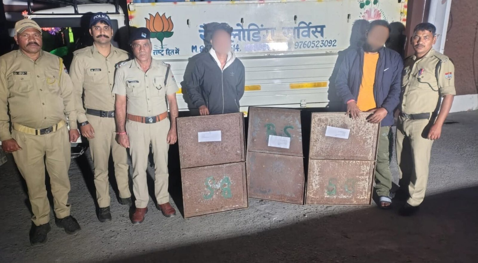 पुलिस टीम के अथक प्रयासों से 20 अक्टूबर को चोरी हुई 77 सेटिंग प्लेट में से 56 प्लेटों के साथ 02 अभियुक्त 1.दिगपाल सिंह पुत्र राजेंद्र सिंह, निवासी रेन देवाल थाना थराली, उम्र 35 वर्ष व 2. रवि कुमार पुत्र गजपाल राम, निवासी ग्राम ऑर्डर थाना थराली जनपद चमोली, उम्र 27 वर्ष को वाहन संख्या UK11CA-8867 (पिकअप) समेत जनपद देहरादून से गिरफ्तार किया गया।
