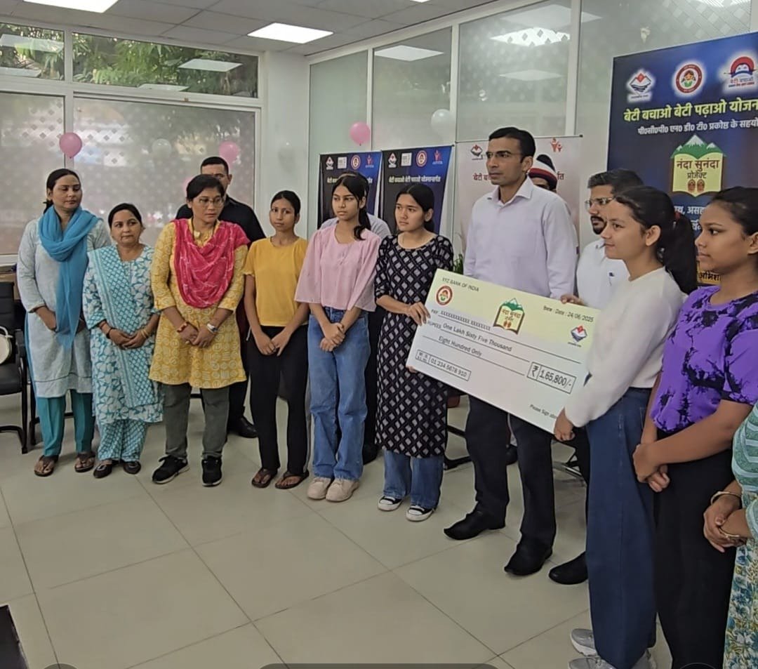 आज गौरांशी सिंघल कक्षा 12 न्यू इमेज इन्टरनेशनल ब्यूटी इंस्टीट्यूट, 35000 रू०, अनुष्का क्षेत्री कक्षा 11 केन्द्रीय विद्यालय को 7800, कु0 वैष्णवी कक्षा 12 शिवालिक इन्टरनेशनल स्कूल, 33000, कु0 तनु शर्मा कक्षा 12 उत्तरांचल यूनिवर्सिटी देहरादून, 60000, कु0 शताक्षी शर्मा कक्षा 11 इण्डियन अकेडमी नेहरूकालोनी, 30000 का चैक दिया गया है। आज 5 नंदा-सुनंदा देवीयों को कुल 165800 रू0 मात्र के चैक दिए गए। अब तक जिले में लगभग 14 लाख रू0 से 38 बालिकाओं की शिक्षा को पुनर्जीवित किया गया है।