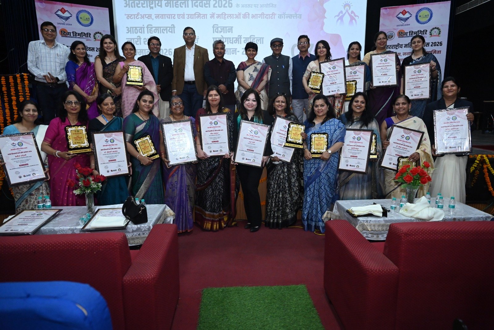 देहरादून । यूकॉस्ट ने अंतर्राष्ट्रीय महिला दिवस के अवसर पर इंस्टीट्यूशन ऑफ इंजीनियर्स (इंडिया) सभागार में पांचवें विज्ञान प्रयोगधर्मी महिला सम्मान से 07 महिलाओं को एवं आठवें हिमालयी नारी शक्ति सम्मान से 20 महिलाओं को सम्मानित किया। इस अवसर पर “स्टार्टअप्स, नवाचार एवं उद्यमिता में महिलाओं की भागीदारी” विषयक कॉनक्लेव भी आयोजित किया गया।