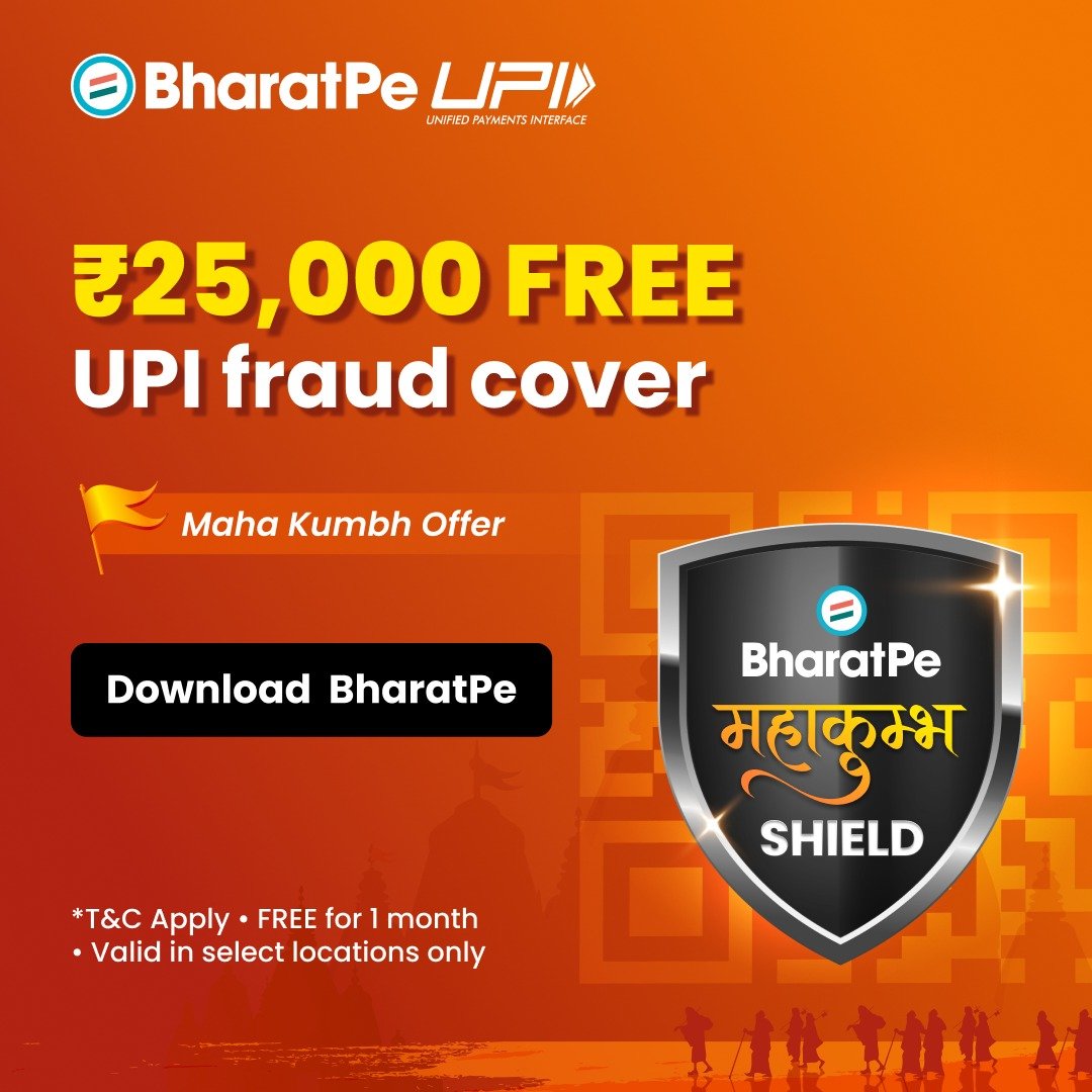 - जो यूजर्स प्रयागराज में महाकुंभ के दौरान भारतपे ऐप इंस्टॉल करेंगे और अपना पहला लेनदेन करेंगे, उन्हें पहले महीने के लिए शील्ड सेवा मुफ्त मिलेगी